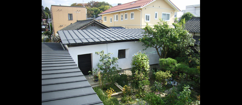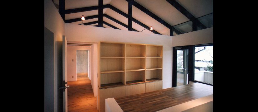 鉄砲町の家 DATA:所 在 地 :山形県山形市用 途:アトリエ併用住宅施 工:(建築)トガミ建匠 (電気・空調)チトセ電工 (衛生・給排水)黒澤建設工業延床面積:275.76㎡構造規模:RC木造混構造2階建て竣 工:2004年撮 影:峯田建