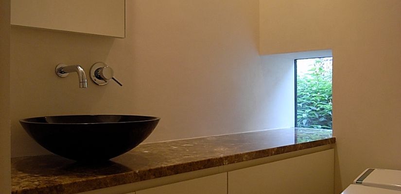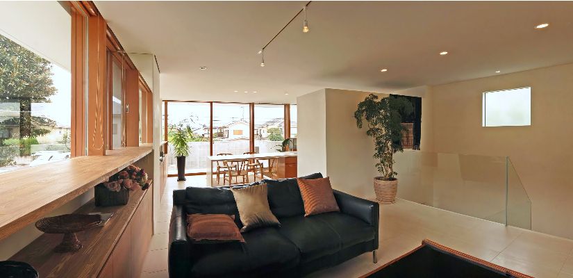 書斎に籠って仕事をする事が多いご主人は、仕事の合間に気分転換ができ、家族や仲間とリラックスして過ごせるようなる空間を望まれた。しかし、ここは3方を建物に囲まれた住宅地。1階レベルでは良好な景観や冬場の日射しは期待できない。