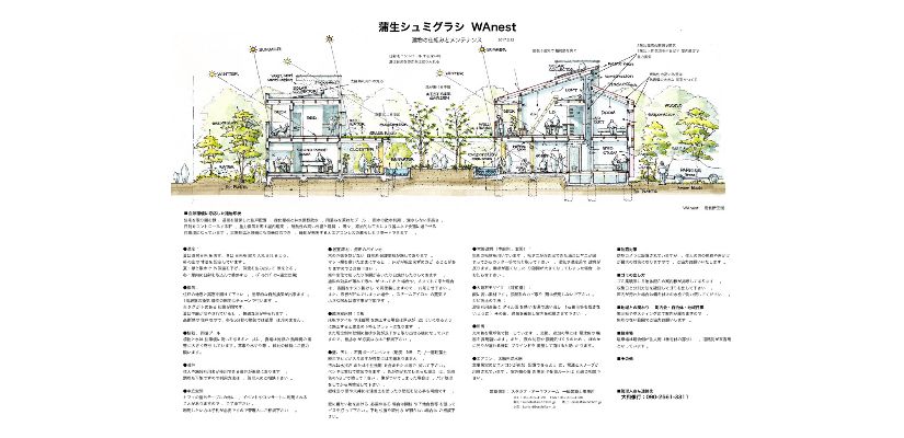 さらに、日射しを季節に合わせて調整できる深い軒や緑化屋根、井水散水設備、通風を即すエアダクト、太陽熱利用設備への対応など、様々な工夫と共に環境負荷の少ない暮らしが楽しめます。